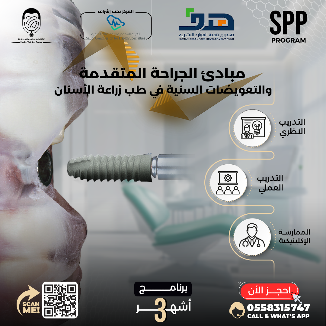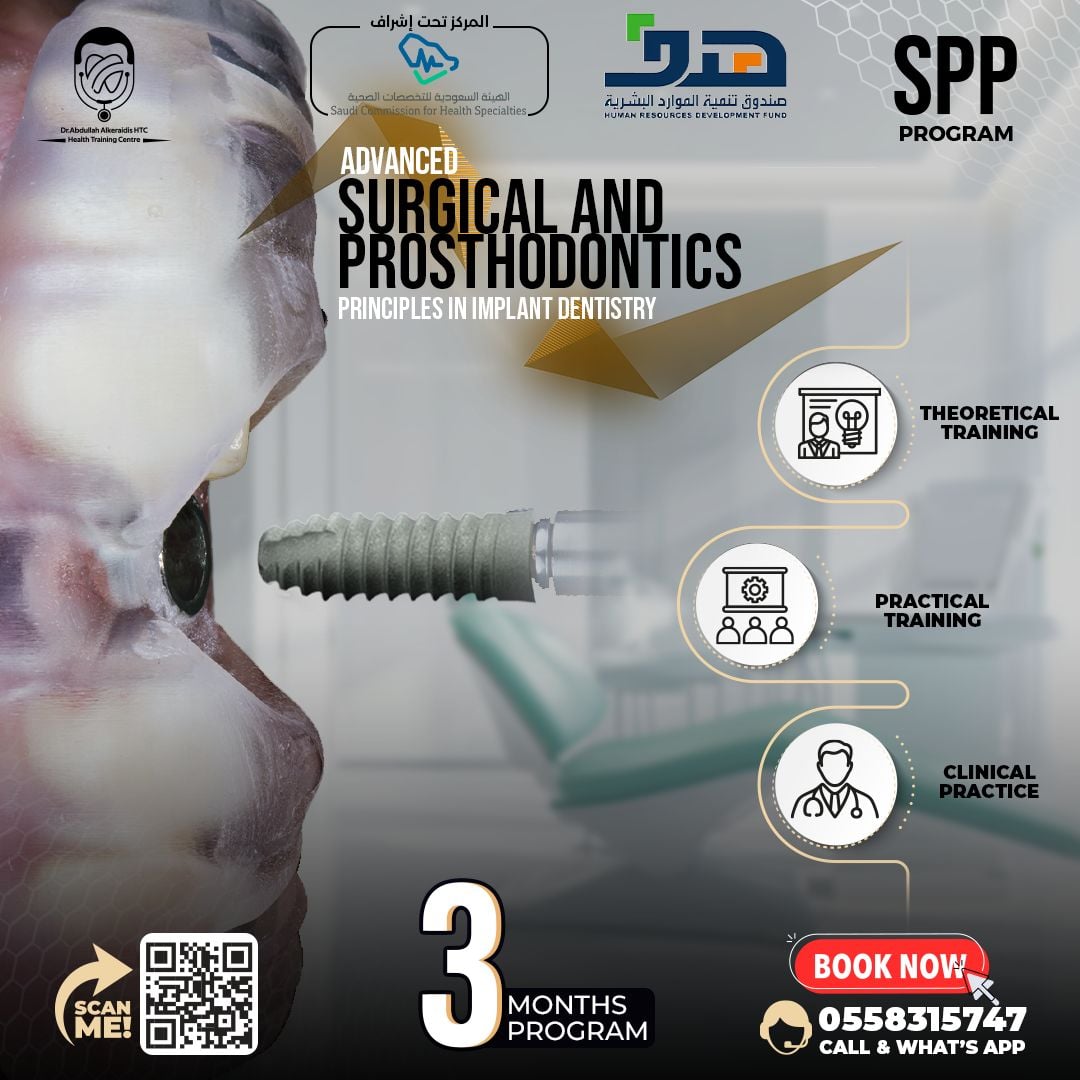 🔹 فهم المبادئ العلمية المتقدمة لجراحة وتعويضات زراعة الأسنان.
